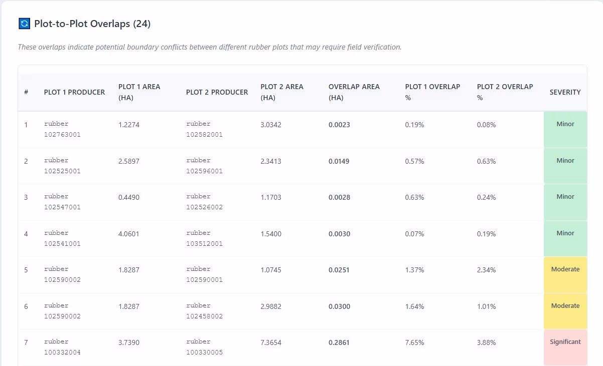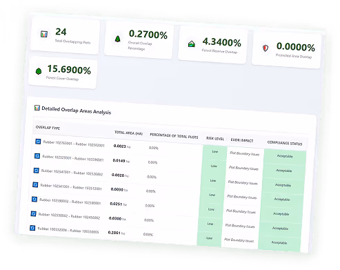 Upload your GeoJSON files and get instant compliance reports for your rubber supply chain from Thailand and beyond.