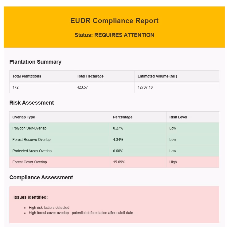 Advanced geospatial analysis meets regulatory expertise to deliver the most accurate EUDR compliance reporting available.